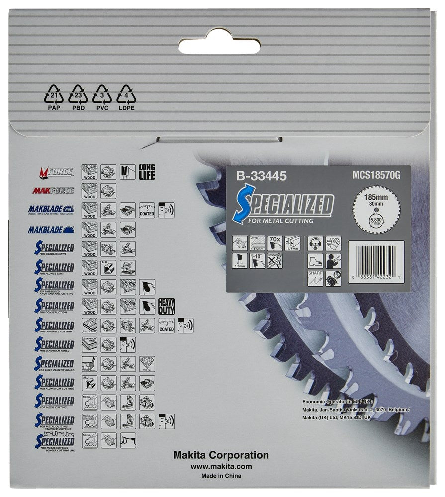 Makita Zaagblad Metaal 185X30X1,7 70T 10G - B-33445