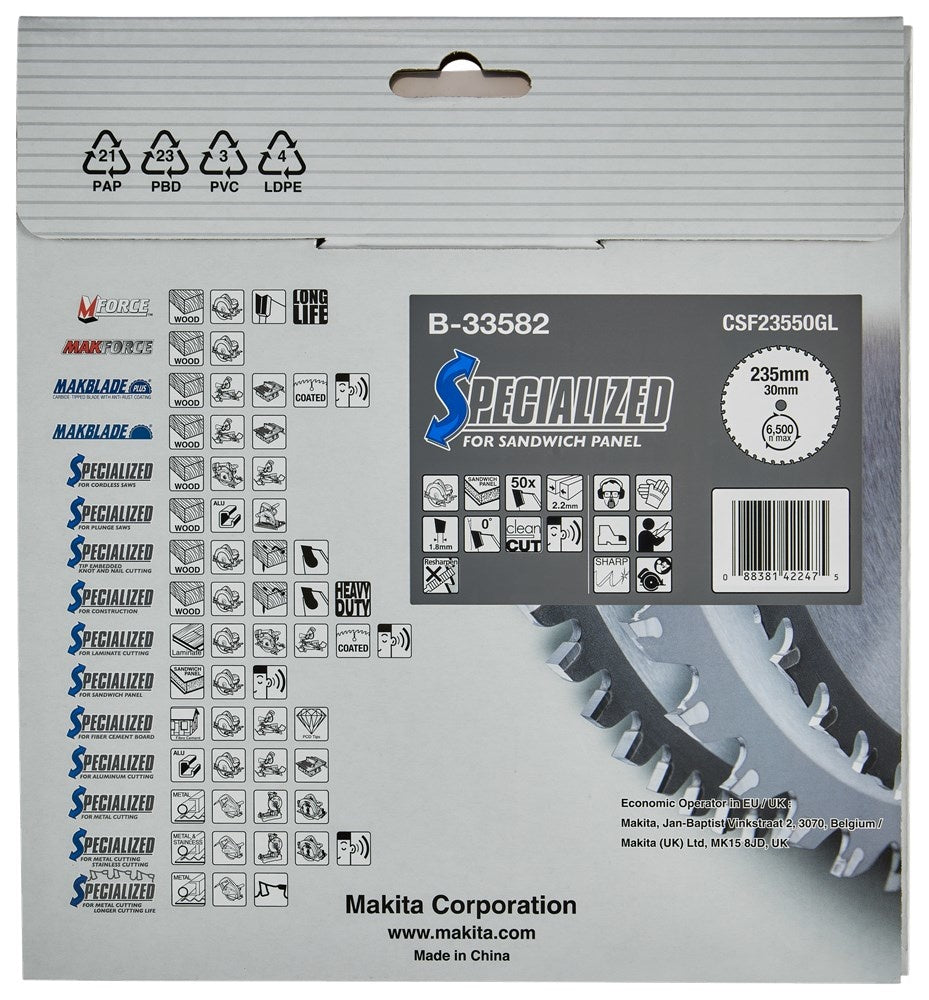 Makita Zaagblad Sandwichpaneel 235x30x2,2 50T 0G - B-33582