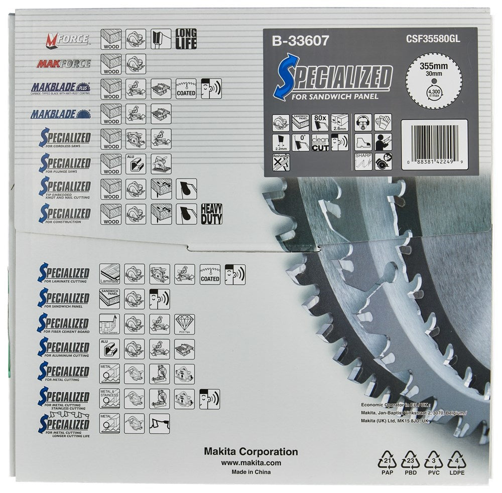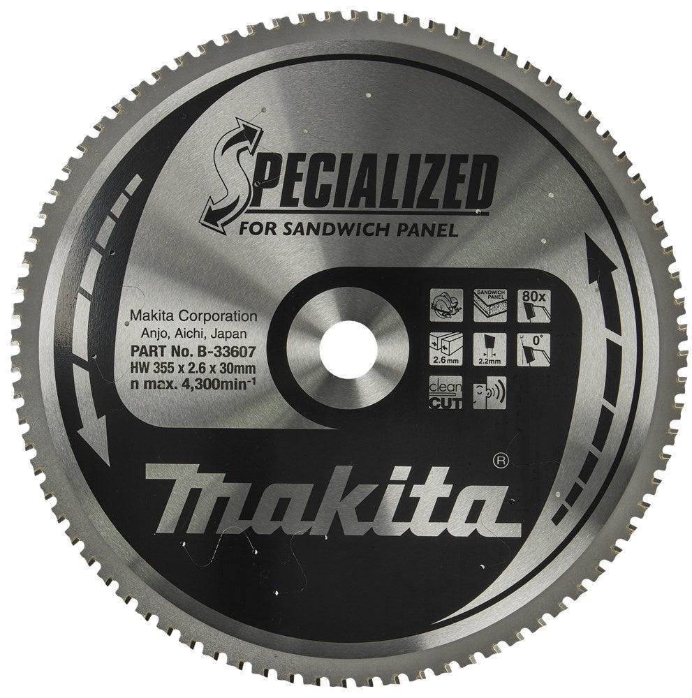 Makita Zaagblad Sandwichpaneel 355x30x2,6 80T 0G - B-33607