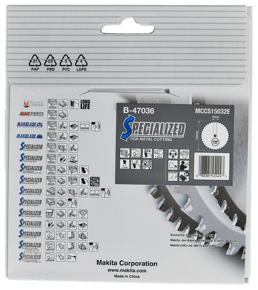 Makita Zaagblad Staal 150x20x1,5mm 32T 0G - B-47036