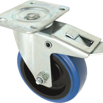 Elektrolytisch verzinkt met plaat en rem. Blauw rubber loopvlak met glijlager. Technische specificaties uitvoering met plaat en rem diameter (asgat) 10,2 mm draagvermogen 400 kg diameter (wiel) 160 mm model (lager) glijlager bouwhoogte 195 mm materiaal...
