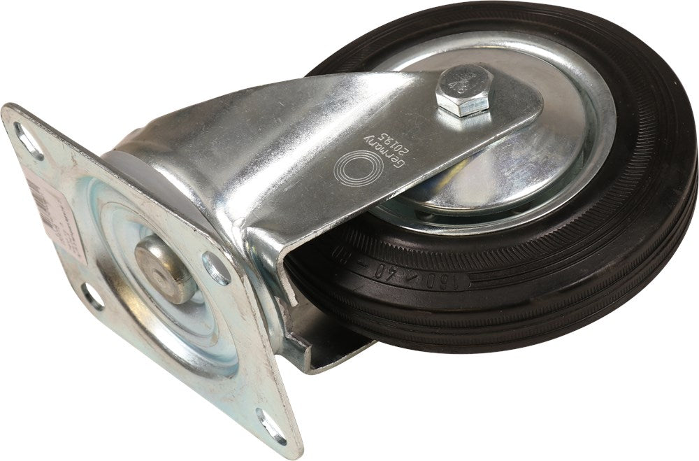 Elektrolytisch verzinkt met plaat. Zwart rubber loopvlak met stalen velg en rollager.